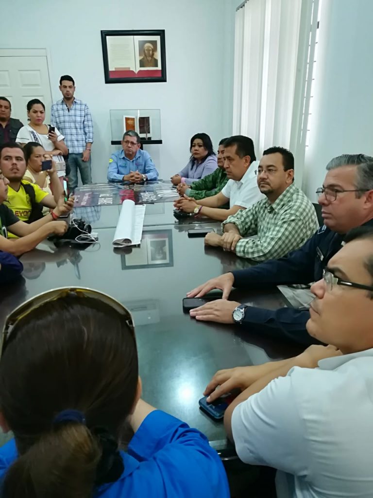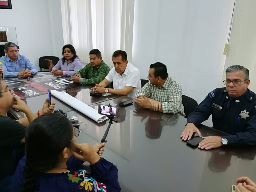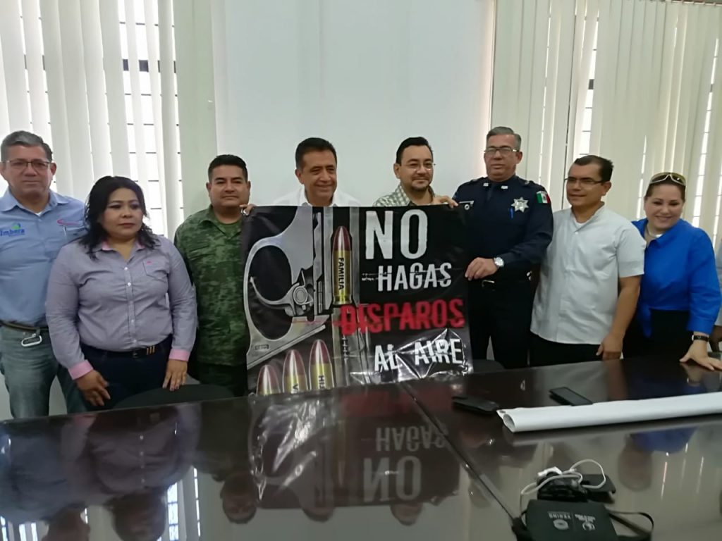 En rueda de prensa, el alcalde Cruz Lucatero; Francisco Valle presidente de la Mesa de Seguridad; representantes de la Sedena; Policía Federal de Caminos; del sector empresarial y Fiscalia Regional, exhortaron a los ciudadanos a no detonar armas de fuego el 31 de Diciembre.