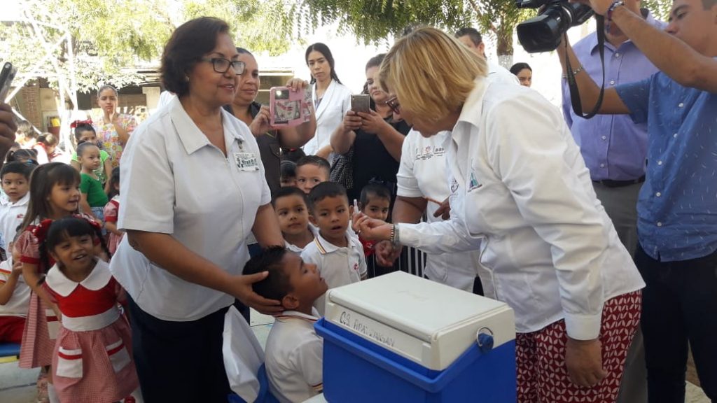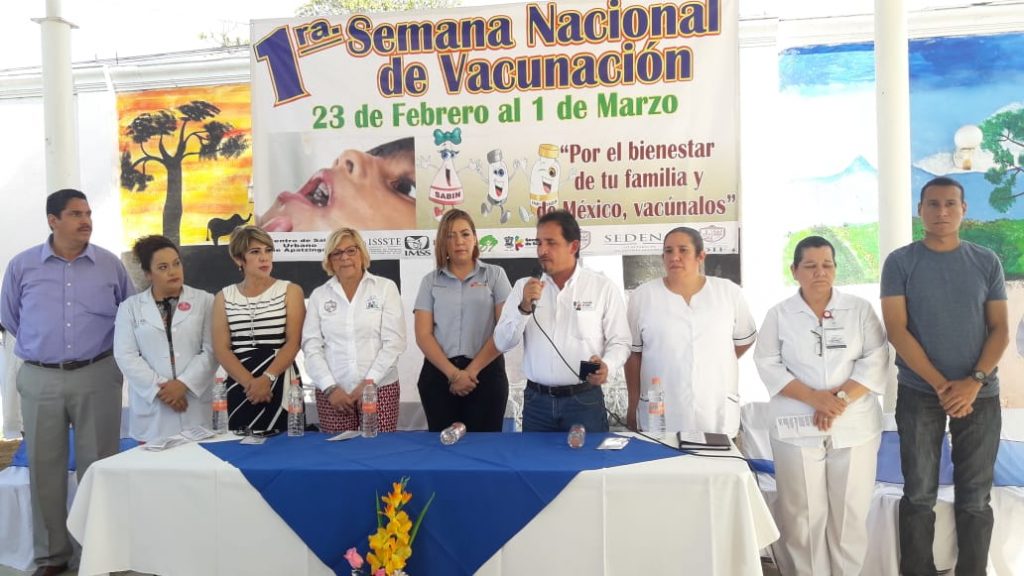 Apatzingán, Mich., Con la aplicación de la primera vacuna, la presidente del DIF Municipal, Minerva Guízar Brito, puso en marcha la Primera Semana Nacional de Salud 2019, en evento realizado en las instalaciones del CENDI “Uatsi Sapichu Jorhendi”.