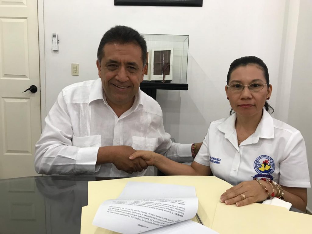 Apatzingán, Mich., El presidente municipal José Luis Cruz Lucatero y María Agustina Román Bello, líder del Sindicato Único de Empleados al Servicio del Municipio de Apatzingán (Suesma), celebraron la firma del Contrato Colectivo de Trabajo el cual plasma el incremento del cinco por ciento salarial y, prestaciones para los trabajadores del municipio.