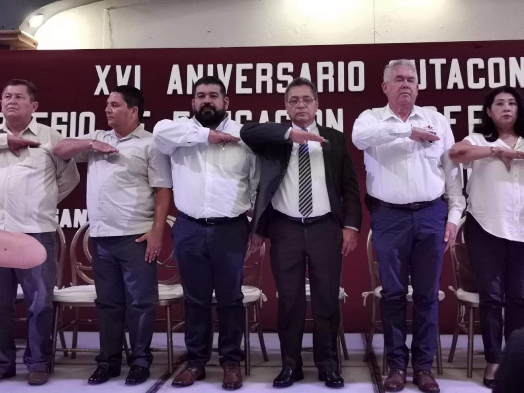 Apatzingán, Mich., Al presidir este día el acto con motivo del XVI Aniversario del Sindicato Único de Trabajadores Académicos del CONALEP, el Diputado Federal por el Distrito 12 con cabecera en Apatzingán, Paco Huacus Esquivel, reafirmó su compromiso con la educación asimismo, aseguró que las demandas laborales planteadas son algo que le preocupa y ocupa y que acompañara al sindicato con esta gestión ante el Congreso de la Unión.