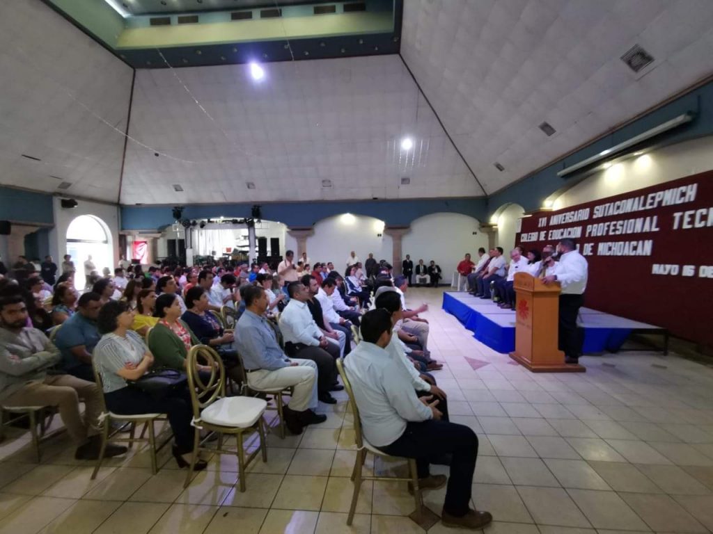 Paco Huacus felicitó ampliamente a los trabajores de la educación y reconocio al CONALEP como una institución con una gran calidad educativa, de la que han egresado excelentes profesionistas que han puesto muy en alto el nombre de Michoacán a nivel nacional e internacional.