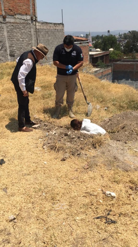 Por lo anterior, el equipo multidisciplinario de la institución se dirigió al lugar para realizar diligencias correspondientes, percatándose que el animal fue desatado por una vecina de lugar, quien pidió apoyo para enterrar el animal en un terreno baldío, por lo que se procedió a realizar la exhumación del canino, mismo que fue trasladado al Servicio Médico Forense para practicar los dictámenes periciales y continuar con los actos de investigación.