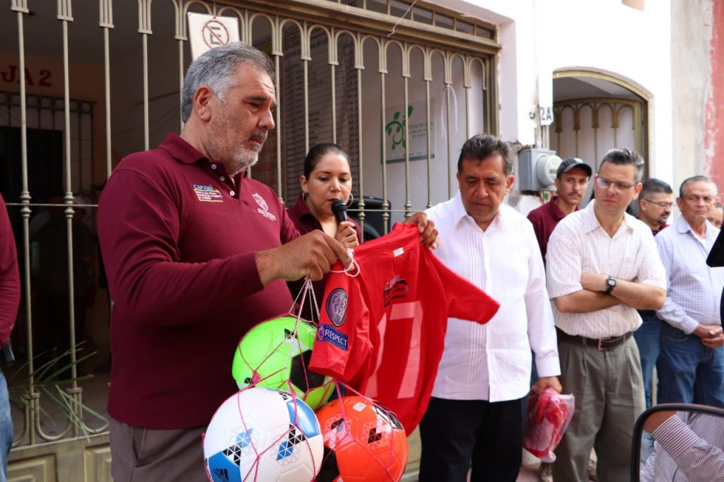 Durante el acto protocolario, el presidente y el director del Capama, Homero Gómez Rubí, también entregaron al sindicato del organismo operador, los uniformes de futbol y balones, ello establecido en el Contrato Colectivo de Trabajo.