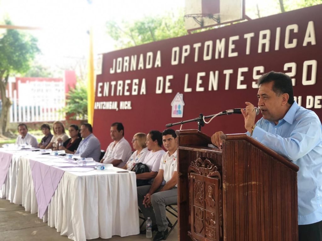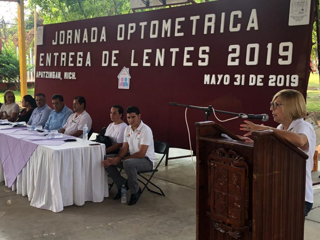 Apatzingán, Mich., Para mejorar la calidad de vida de los ciudadanos con problemas de visión, el presidente municipal, José Luis Cruz Lucatero y la primera dama, Minerva Guízar Brito, entregaron lentes a beneficiados de la jornada optométrica de los municipios de: Múgica, Buenavista, Coalcomán, Gabriel Zamora, Tepalcatepec y Parácuaro.