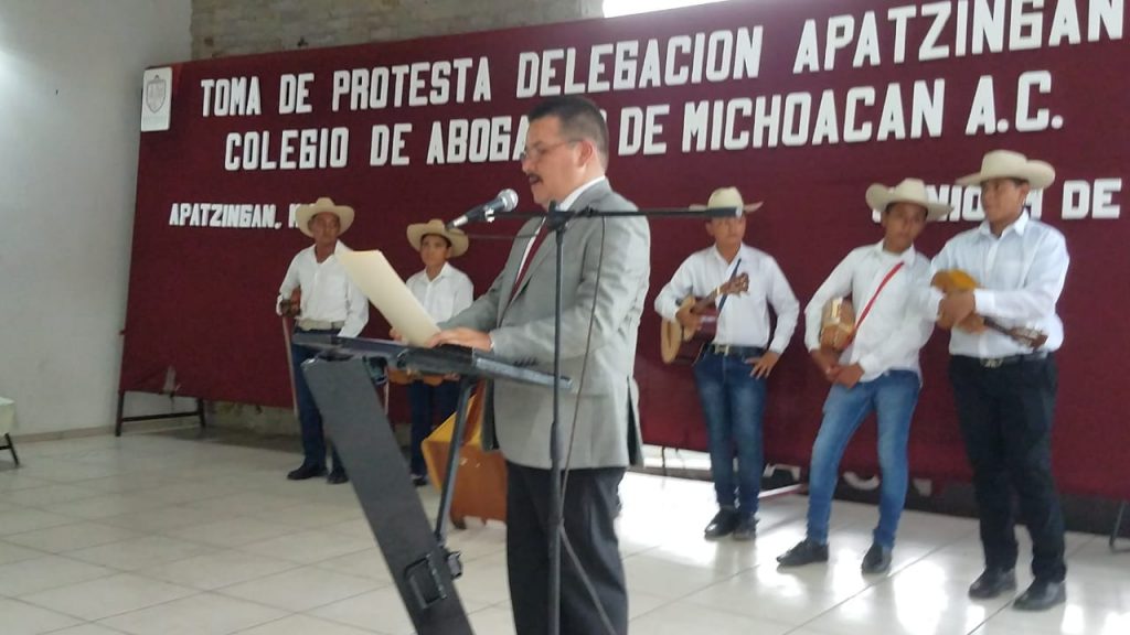 Apatzingán, Mich., En presencia del presidente municipal el Licenciado José Luis Cruz Lucatero, quien tomó la protesta a la nueva directiva del colegio de abogados de Apatzingán, donde fue unguido como presidente como tal Víctor Manuel Mota Baltazar, y fiel testigo oficial el Licenciado Daniel Mora, titular de los abogados a nivel delegacional, la ceremonia protocolario se llevó a cabo en uno de los salones del Motel Río Grande, ante agremiados, notarios e invitados.