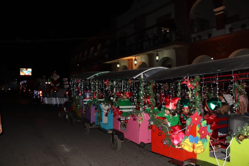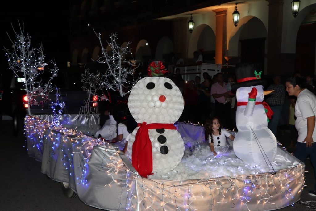 Apatzingán, Mich., Con luces, colores, música y la participación de instituciones educativas, empresas y dependencias de gobierno, se llevó a cabo el tradicional desfile navideño, con lo que iniciaron oficialmente las festividades decembrinas.