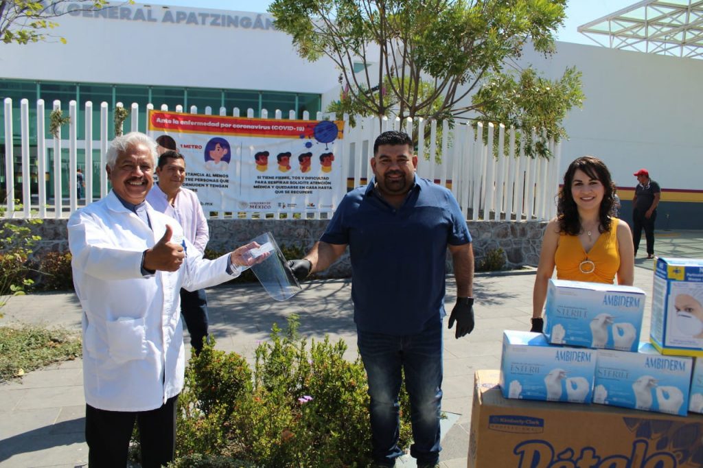 APATZINGÁN, MICH., El Diputado Federal Paco Huacus Esquivel y la Regidora del PT Blanca Azucena Álvarez Chávez hicieron una importante donación de productos de limpieza y protección al Hospital Regional de Apatzingán, dentro del que se incluye material como caretas para médicos enfermeras y cubrebocas certificados para protección del personal de salud que esta en la primera línea del combate al COVID-19.