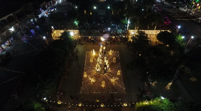 Apatzingán, Mich., A disfrutar las fiestas decembrinas de manera sana y tranquila y no relajar las medidas sanitarias por el Covid-19, exhortó el presidente municipal, José Luis Cruz Lucatero, al momento de encender el árbol navideño y la iluminación del centro de la ciudad.
