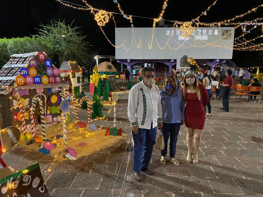 Apatzingán, Mich., Como parte del programa decembrino que prepararon las autoridades municipales, el alcalde José Luis Cruz Lucatero, inauguró la “Villa Navidad” en la biblioteca “Benito Juárez”, en compañía de su esposa Minerva Guízar Brito.