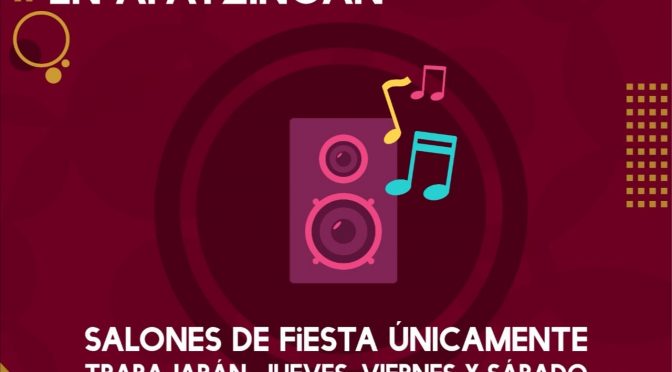 Cabe destacar que dentro de las nuevas medidas de prevención del Covid-19, los salones de fiesta tienen permitido ofrecer sus servicios los días jueves, viernes y sábado, hasta las 23:00 horas.