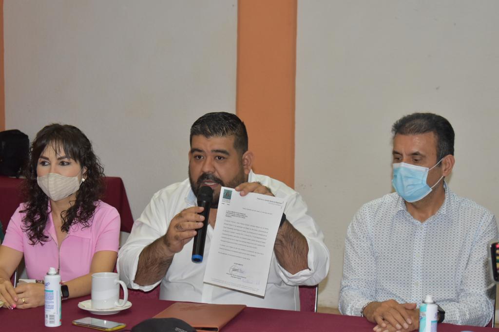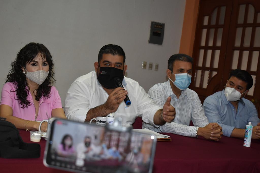 Durante la conferencia de prensa el ahora legislador con licencia, estuvo acompañado por las integrantes de la Coordinadora Municipal del PT Blanca Azucena Álvarez Chávez y Patricia Magaña Torres, así como Toño Cruz y Julio Moreno, donde expuso que el PT determinó que sea el único aspirante a la Presidencia Municipal y que esperara a que Morena determine con quien se medirse en la encuesta para definir al candidato, lo que tiene que ser la próxima semana.