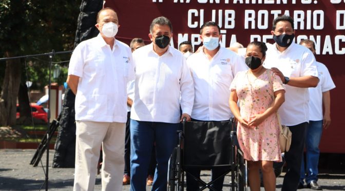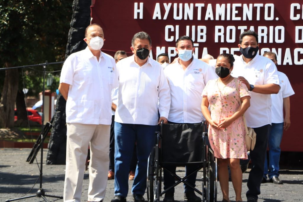 En la Plaza de Los Constituyentes, el alcalde agradeció al Club Rotario, del que forma parte, por el apoyo que ha recibido a lo largo de su administración, para lograr que más personas de escasos recursos accedan a una silla de ruedas de forma gratuita.