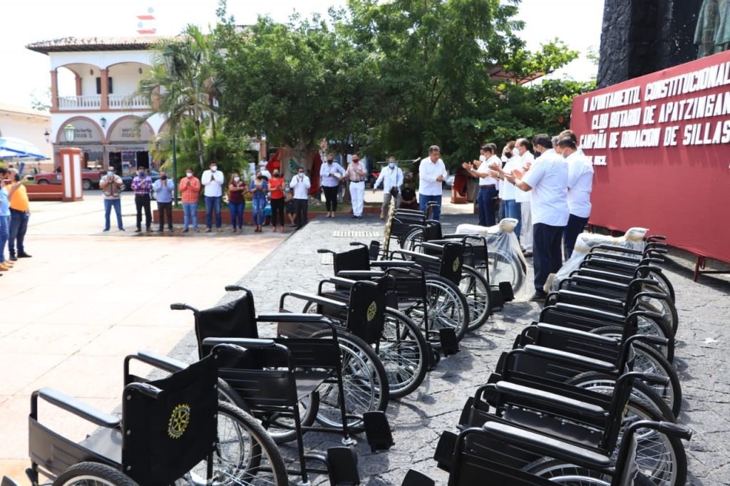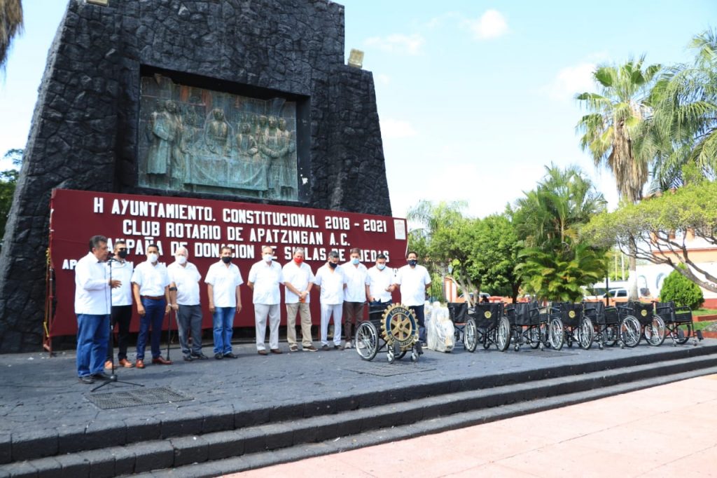 Apatzingán, Mich., El presidente municipal, José Luis Cruz Lucatero, hizo la entrega de 15 sillas de ruedas donadas por los integrantes del Club Rotario de Apatzingán, a fin de garantizar una mejor calidad de vida a las personas que por diversas circunstancias no se pueden desplazar con facilidad.