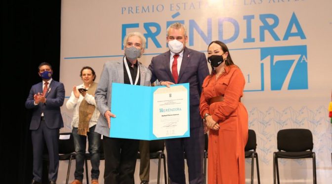 Los galardonados de la 17 edición del Premio Estatal de las Artes Eréndira 2021 fueron: Manuel Valencia Chávez (categoría en artes tradicionales), Rafael Flores Correa (categoría en artes visuales) y Juan Alzate Núñez (categoría en música y arte sonoro).