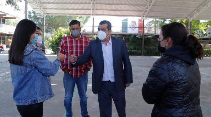 Morelia, Michoacán, Ante el reporte de un supuesto brote de Covid-19 en la Primaria “Hijos del Ejército” de Morelia, el Secretario de Salud de Michoacán (SSM), Elías Ibarra Torres acudió personalmente a verificar dicha situación.