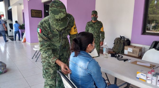EL PERSONAL MILITAR APOYO EN LO SIGUIENTE:− CONSULTAS MÉDICAS Y ODONTOLÓGICAS.− ENTREGA DE MEDICAMENTOS.− MANTENIMIENTO A INSTALACIONES.− TRABAJOS DE PLOMERÍA, PINTURA Y ELECTRICIDAD.− CORTES DE PELO.− PLATICAS DE MEDICINA PREVENTIVA, ASÍ COMO, SEGURIDAD PERSONAL.
