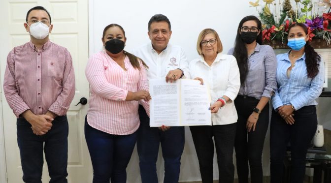 Durante la firma del convenio estuvo el alcalde, José Luis Cruz Lucatero; la presidenta y directora del DIF, Minerva Guízar Brito y Beatriz Cortez Segura, respectivamente; la sindico, Gisela Martínez Aguilar; la titular del departamento de Igualdad y Diversidad Social, Ivonne Galván y Emily Estephania Medina Domínguez, así como el director de Prevención y Participación Ciudadana, Francisco Valle Pantoja.