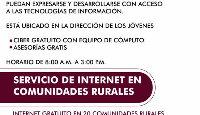 Finalmente, informó que la dirección de jóvenes cuenta también con acceso de Internet para quién tenga la necesidad de usar el espacio y computadoras lo pueden hacer sin costo.
