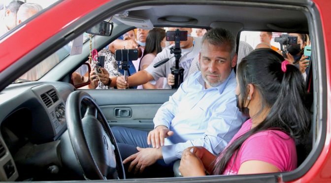 Uruapan, Michoacán, El gobernador Alfredo Ramírez Bedolla, junto con el presidente municipal de Uruapan, Ignacio Campos Equihua, visitó el módulo para la regularización de vehículos de procedencia extranjera ubicado en el Nodo de Educación a Distancia de la Universidad Michoacana de San Nicolás de Hidalgo.