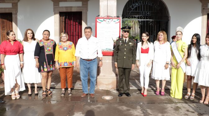 Finalmente, el presidente colocó el programa septembrino acompañado por el coronel de Infantería Antonio Franco Pompa, comandante del 30 Batallón de Infantería, así la presidenta del DIF, Minerva Guízar Brito, y regidores.