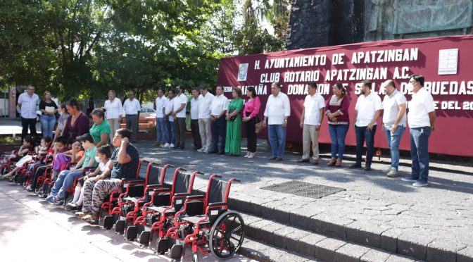 Apatzingán, Mich.- El Sistema para el Desarrollo Integral de la Familia y el Club Rotario de Apatzingán entregaron un paquete de 11 sillas de ruedas para niños y jóvenes que presentan algún tipo de discapacidad.