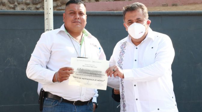Apatzingán, Mich., El presidente municipal, José Luis Cruz Lucatero acompañado de la gerente del Servicio Social Mexicano, Ma. Carmen Olayo Ávila y el coronel, Antonio Franco Pompa, cancelaron la edición especial de la estampilla postal denominada “Grito de Independencia de México”.