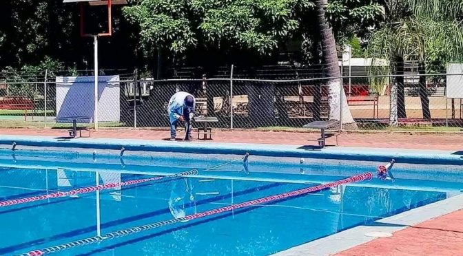 Apatzingán, Mich.- La alberca olímpica de la Unidad Deportiva “Adolfo López Mateos” seguirá cerrada por al menos dos semanas más debido al mantenimiento profundo, así como la rehabilitación del equipo de bombeo, boyas y mangueras que se utilizan para procesar el agua.