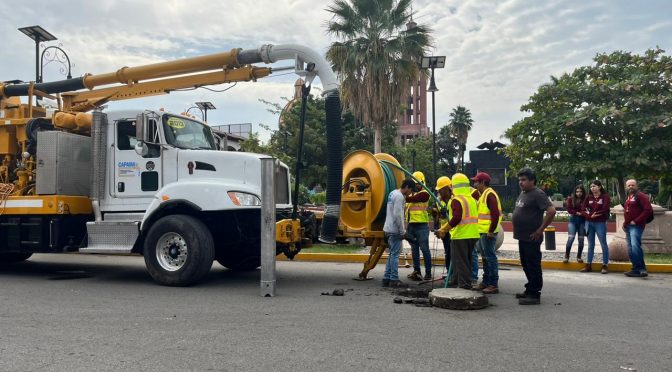 Apatzingán, Mich.- Personal del Comité de Alcantarillado y Agua Potable el día de hoy estrenaron el vactor desazolvando el drenaje y alcantarillado del centro histórico, así como en las colonias Babilonia, Generalísimo Morelos y Nueva, con esto el organismo operador del agua podrá resolver el problema de taponamiento en las línea de drenajes.
