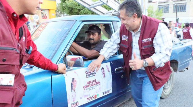Apatzingán, Mich., Acompañado por su brigada el candidato de Morena – Partido del Trabajo y Partido Verde, saludó a los ciudadanos que transitaba por las calles, que en su mayoría reconocieron a José Luis como un hombre de resultados y trabajador.