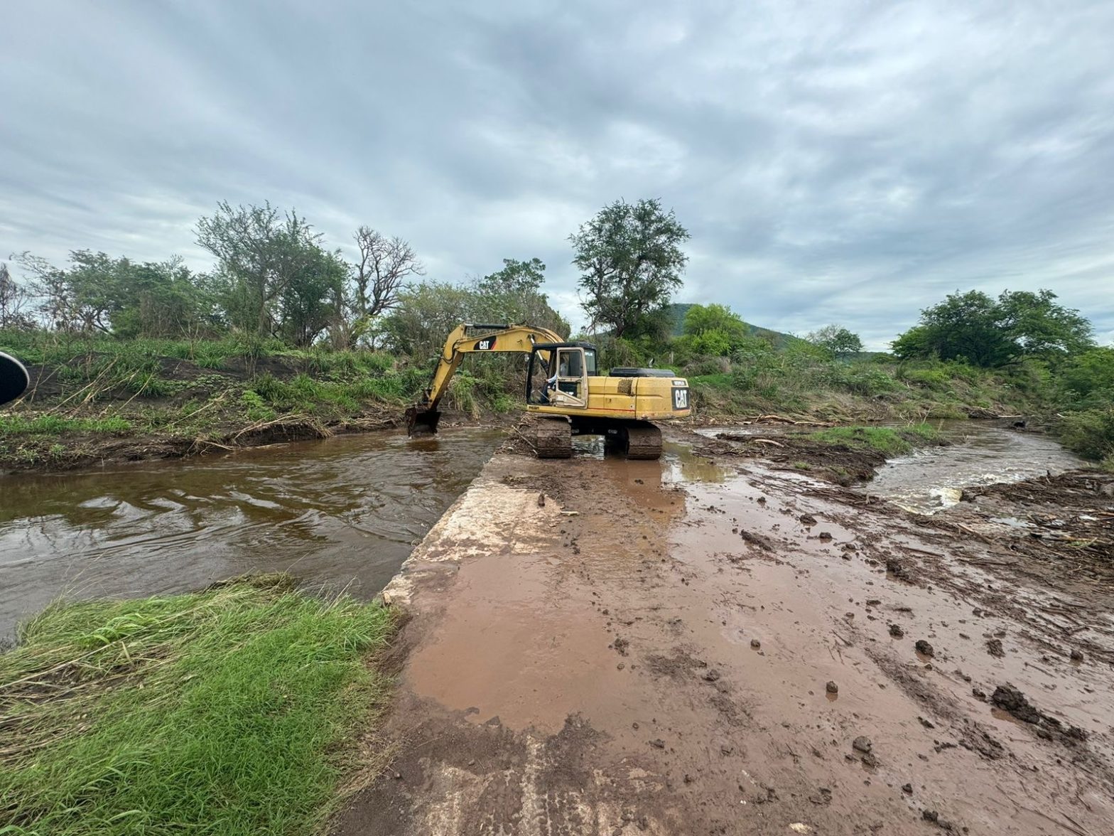 La acumulación de troncos y maleza había generado un taponamiento que incrementó el nivel del agua, impidiendo el paso de vehículos por esta zona. Con la llegada de la excavadora, se espera restablecer la circulación y mejorar las condiciones de vida de los habitantes de la zona.