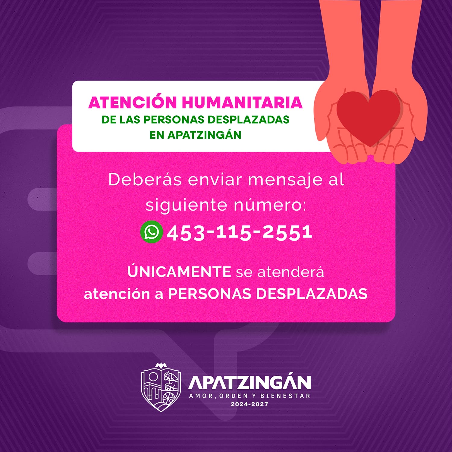 Apatzingán, Michoacán; Con el objetivo de brindar atención inmediata a personas en situación de vulnerabilidad, especialmente familias desplazadas por situaciones de violencia, la presidenta municipal Fanny Arreola informó sobre la habilitación de un número de WhatsApp exclusivo para solicitudes de apoyo humanitario por desplazamiento: