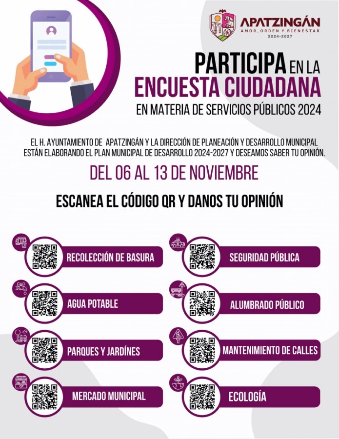 Invita Gobierno de Apatzingán a participar en encuesta púbica de servicios