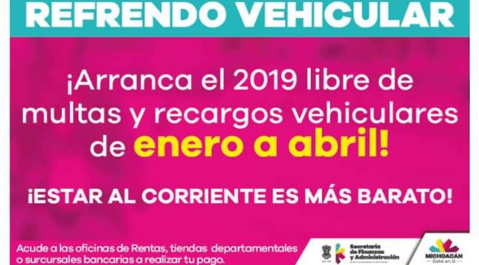 Refrendo Vehicular, del 2 de Enero al 30 de Abril, período ordinario de pago.