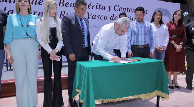 Morelia, Michoacán, El gobernador Alfredo Ramírez Bedolla firmó la propuesta de iniciativa con proyecto de decreto para declarar como “Primitiva, Centenaria y Benemérita” a la Escuela Normal Rural Vasco de Quiroga de Tiripetío, misma que será presentada, en próximos días, al Poder Legislativo del estado. Durante el acto de conmemoración por el centenario de dicha …