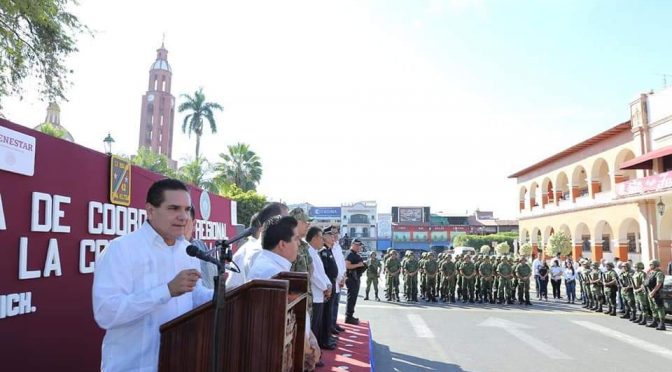 En compañía de autoridades de los tres órdenes de Gobierno, el Gobernador da banderazo de inicio a la estrategia de fortalecimiento para la seguridad pública en la región de Apatzingán. Apatzingán, Michoacán, El Gobernador Constitucional Silvano Aureoles Conejo, dio el banderazo de arranque del Operativo de Coordinación Regional en Materia de Seguridad en Apatzingán, acción …