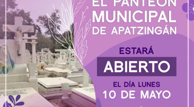 Apatzingán, Mich., a 07 de mayo de 2021.- Con motivo del Día de las Madres, el panteón municipal abrirá sus puertas el próximo 10 de mayo, para recibir a todas las personas que acostumbran visitar a sus familiares en esa fecha; esto, con las estrictas medidas sanitarias. El administrador del inmueble, Miguel Ángel Larios Ávalos, …