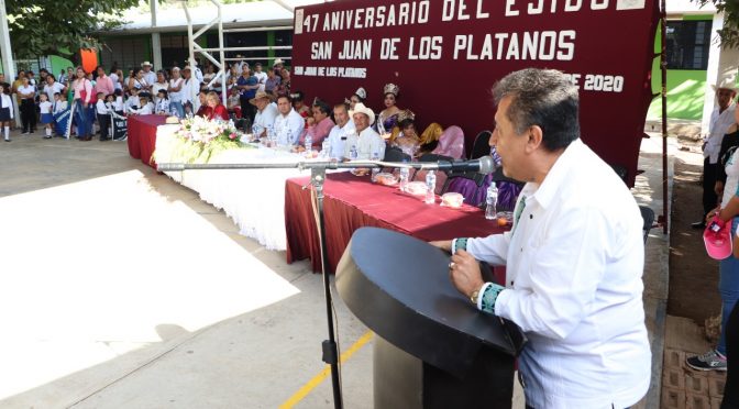 Apatzingán, Mich., Al conmemorar el 47 aniversario de la fundación del ejido San Juan de los Plátanos, el presidente municipal, José Luis Cruz Lucatero, comprometió la construcción de una techumbre en la plaza cívica y un aula en el telebachillerato del lugar. Frente a autoridades ejidales, estudiantes y maestros, el alcalde expuso que ambas obras …